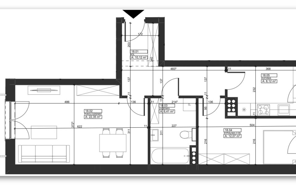 Mieszkanie składa się z jasnego pokoju dziennego, z którego prowadzi wyjście na balkon o południowej ekspozycji, sypialni z oknem na północ, oddzielnej kuchni, łazienki oraz przedpokoju z miejscem na przestronne szafy.