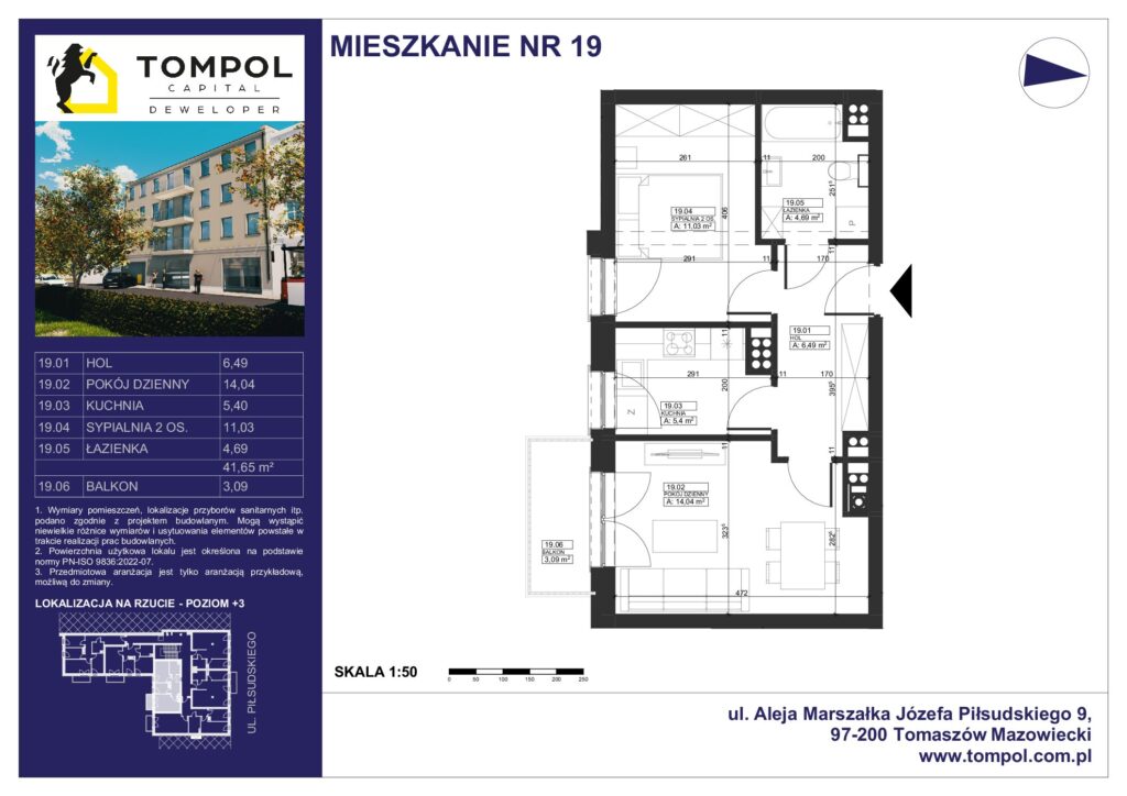 Oferujemy Państwu atrakcyjne mieszkanie nr 19 o powierzchni projektowej 41,65 m², położone na trzecim piętrze kameralnego, czteropiętrowego budynku w nowej inwestycji przy ulicy Piłsudskiego 9 – w samym sercu Tomaszowa Mazowieckiego.