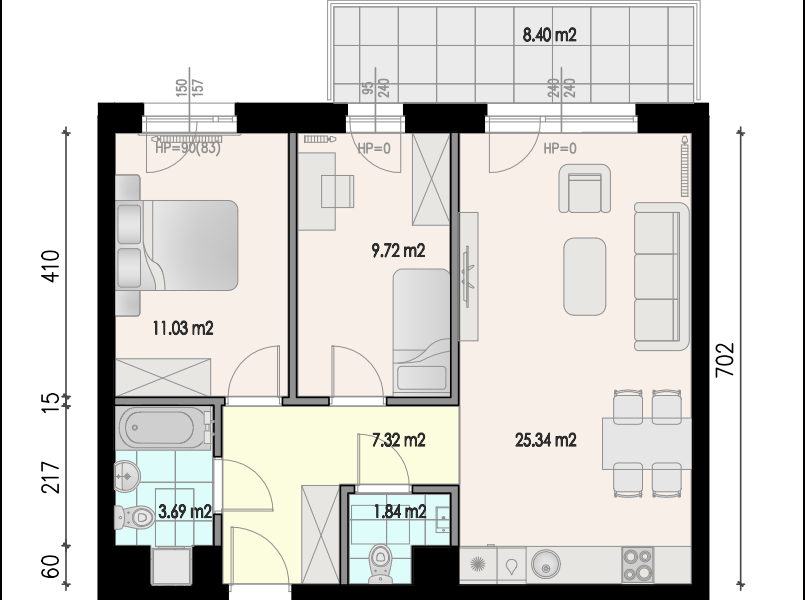 Mieszkanie położone na II piętrze budynku położonego przy ulicy Spalskiej 58 w Tomaszowie Mazowieckim. Usytuowane na zachód z balkonem 8,40 m2 . Mieszkanie składa się z pokoju z aneksem kuchennym, dwóch sypialni, łazienki, WC oraz holu. Wykończone w standardzie deweloperskim: