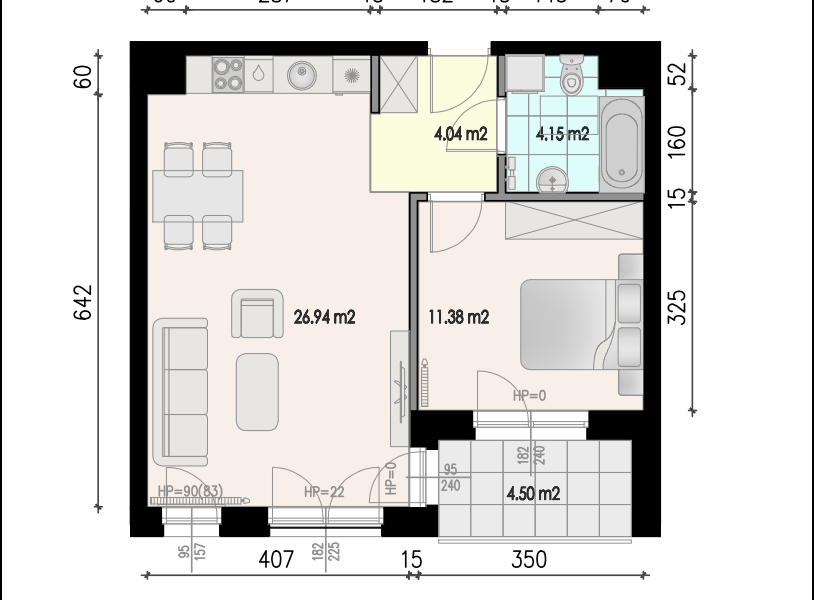 Nasi projektanci zadbali o każdy szczegół, czego efektem jest piękne wnętrze oraz funkcjonalny układ. Atutem wartym uwagi jest wydzielona część sypialniana. Wykańczając lokal korzystaliśmy z wysokiej jakości materiałów budowlanych stawiając na jakość i estetykę.