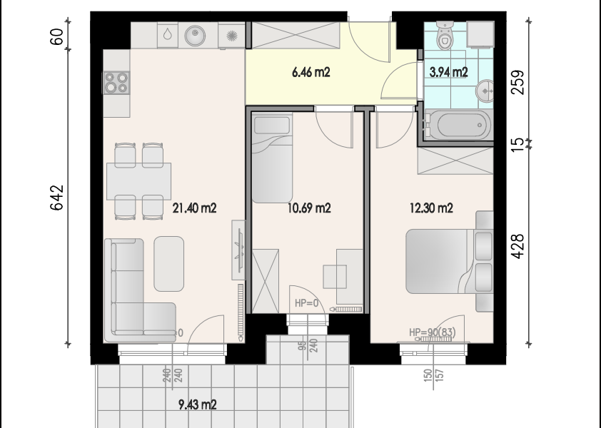 Mieszkanie położone na III piętrze budynku położonego przy ulicy Spalskiej 58 w Tomaszowie Mazowieckim. Usytuowane na wschód z balkonem 9,43 m2. Mieszkanie składa się z pokoju z aneksem kuchennym, dwóch sypialni, WC oraz holu. Wykończone w standardzie deweloperskim: